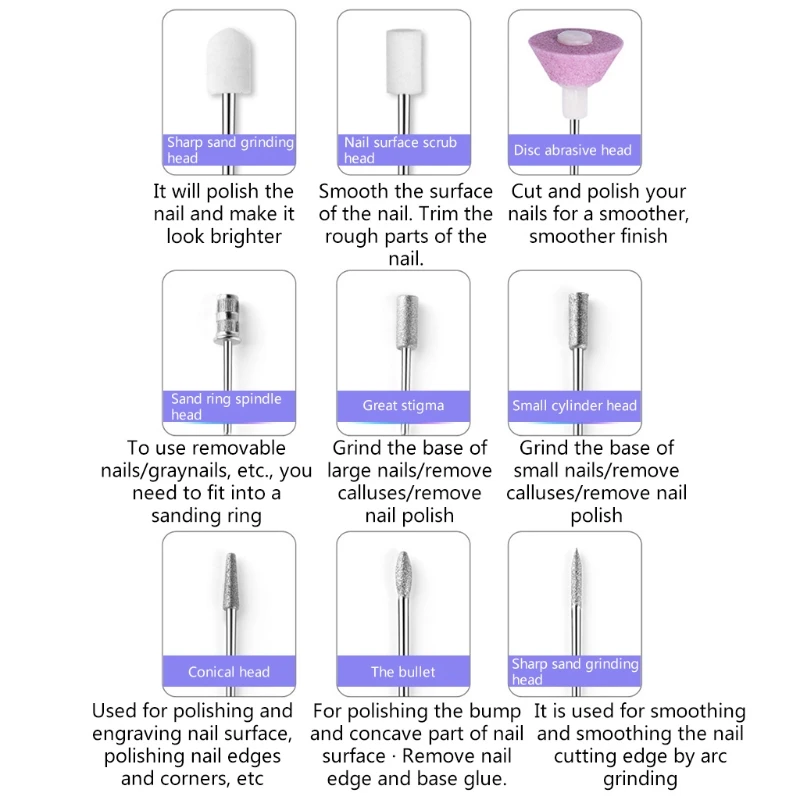 Multifunctional manicure machine set,different kinds of drill bits used for grinding,polishing, removing gel polish,ect.