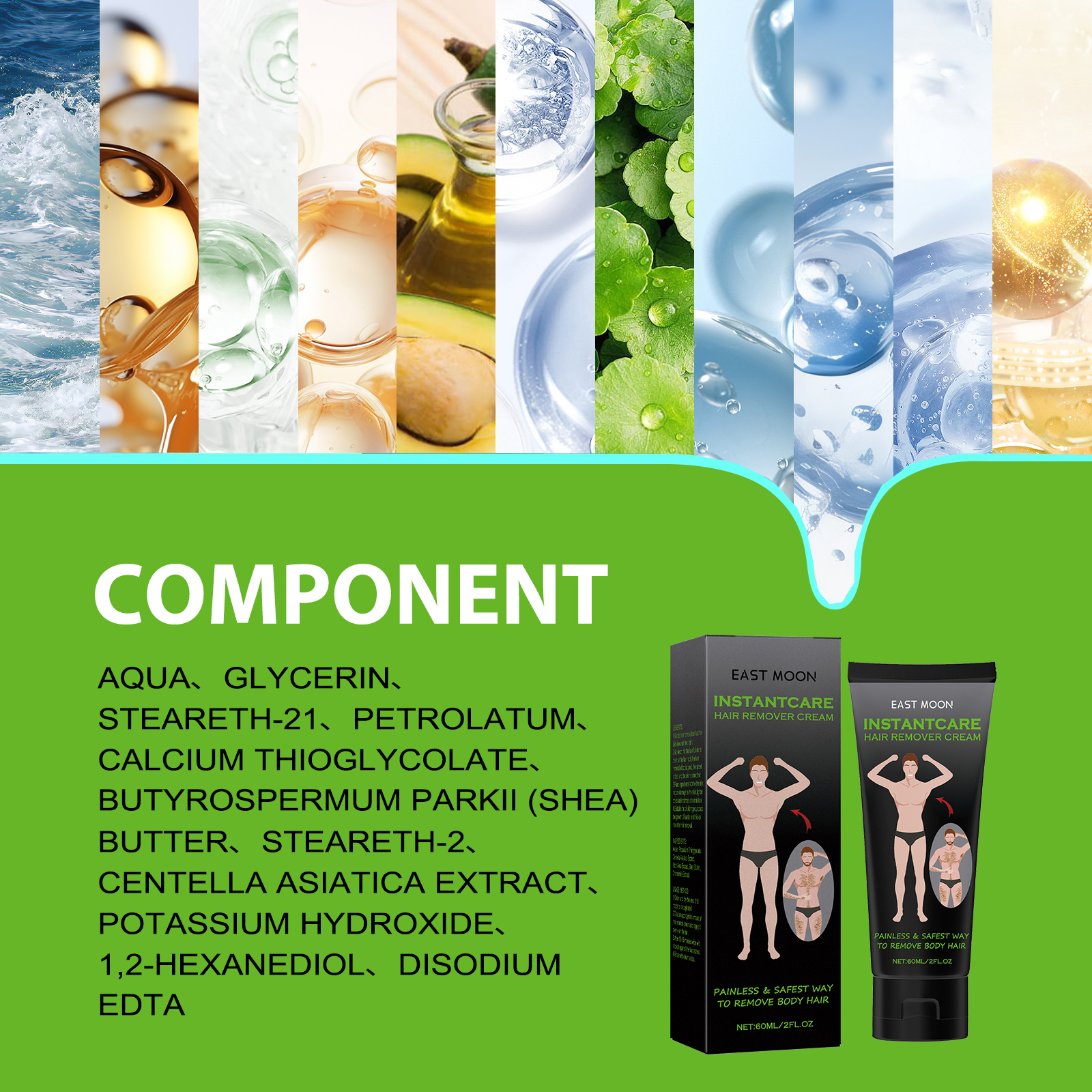 Our hair removal cream for men contains Asiaticum extract, potassium hydroxide. It can quickly remove excess hair. The way to use it is simple: 1. Clean and dry the area that needs to be removed. 2. Take the right amount of hair remover. 3. After 10-15 minutes, wipe the hair scales with a towel and rinse with water. And can be used safely, the ingredients are safe.