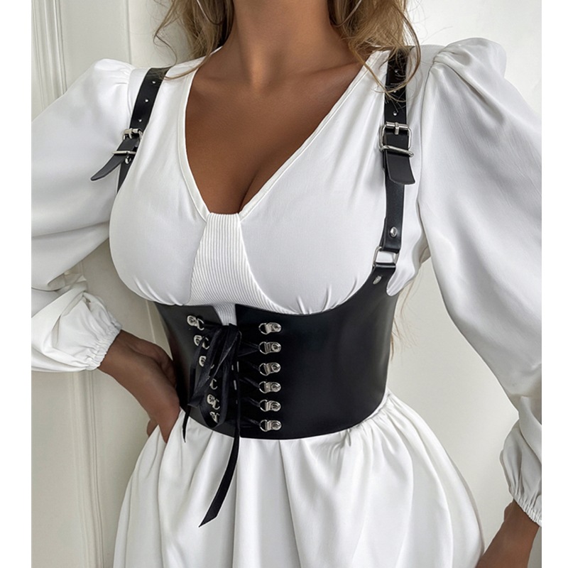 Grenzüberschreitende Amazon eBay Herbst-Einfarbigkeit PU-Ledergürtel Siegel europäische und amerikanische Taille schmale Weste Damenbekleidung Spot 9389